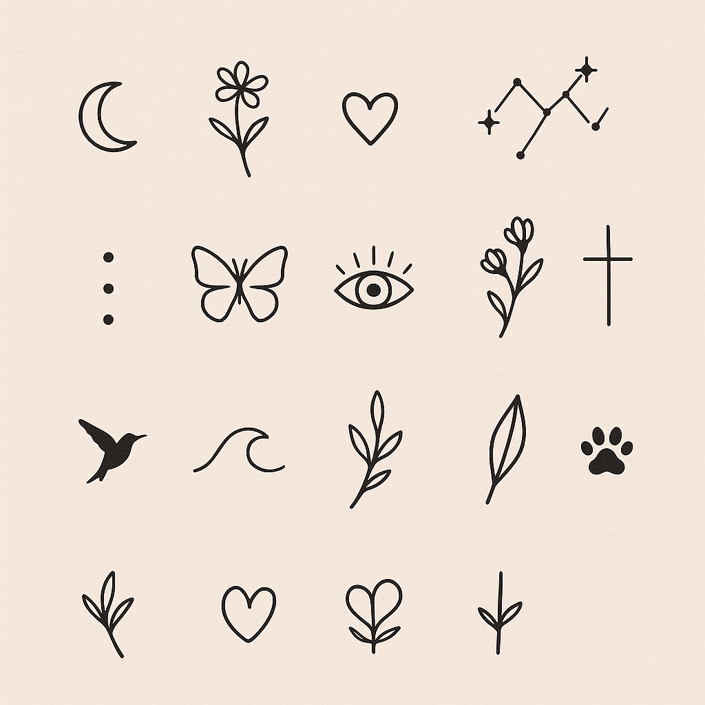 Tatuajes hasta 3 cm Fine Line, diseños lineales o puntos simbólicos en zonas como muñeca, tobillo o detrás de la oreja, como ejemplo. También puedes traer tu diseño o pedirme que te lo diseñe.